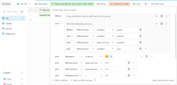 V Expertii se nám pro tento krok nejvíce osvědčil právě Airtable, kam si zmíněný dataset nahrajeme a určujeme relevanci klíčových slov. Přitom si pomáháme jednou z největších předností Airtablu proti Excelu, kterou je prakticky neomezená možnost filtrování. Za pomocí podmínek „a“ a „nebo“ můžeme zadávat desítky podmínek, filtrů a tak efektivněji vybírat relevantní klíčová slova. A to bez zpomalování jako je tomu například u Numbers (tabulkový procesor pro Mac OS, který je jinak na filtrování také skvělý) nebo v Excelu, který často velmi vytěžuje procesor počítače a celkově ho zpomaluje.
